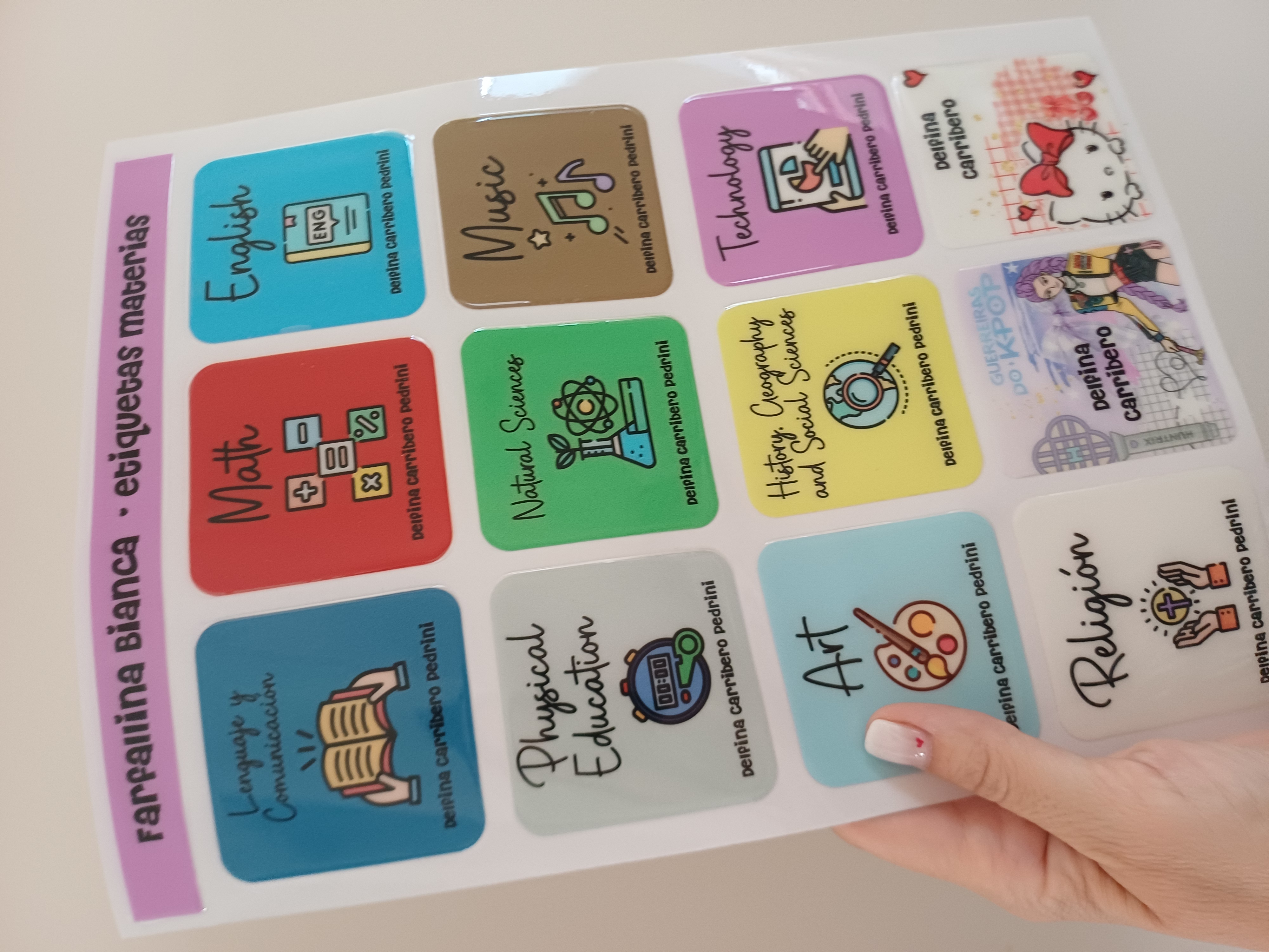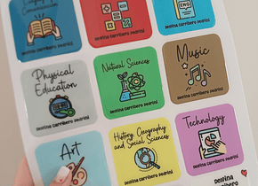 * ETIQUETAS CON RELIEVE PACK 12 ASIGNATURAS
